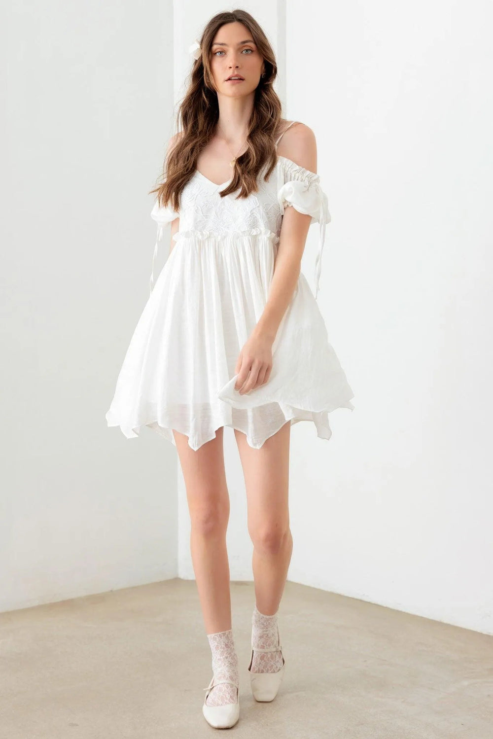 Embrace daring style with our embroidered floral shirred cold shoulder mini dress! Show off your bold fashion sense with this daring dress, featuring intricate embroidered floral details, shirred design, and cold shoulder cutouts. Perfect for those who aren't afraid to take risks and make a statement with their wardrobe!